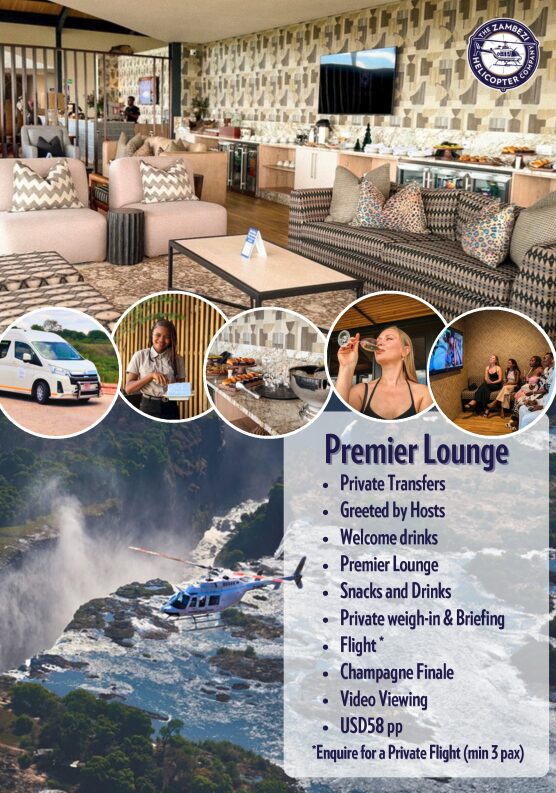 Before the rotors turn and the Zambezi opens beneath you, your journey begins in our Premier Lounge — a refined, private space designed to elevate every moment of your flight experience.